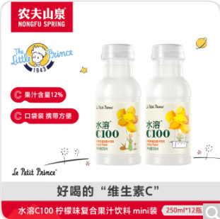 农夫山泉 水溶C100柠檬味复合果汁饮料250ml*12瓶
