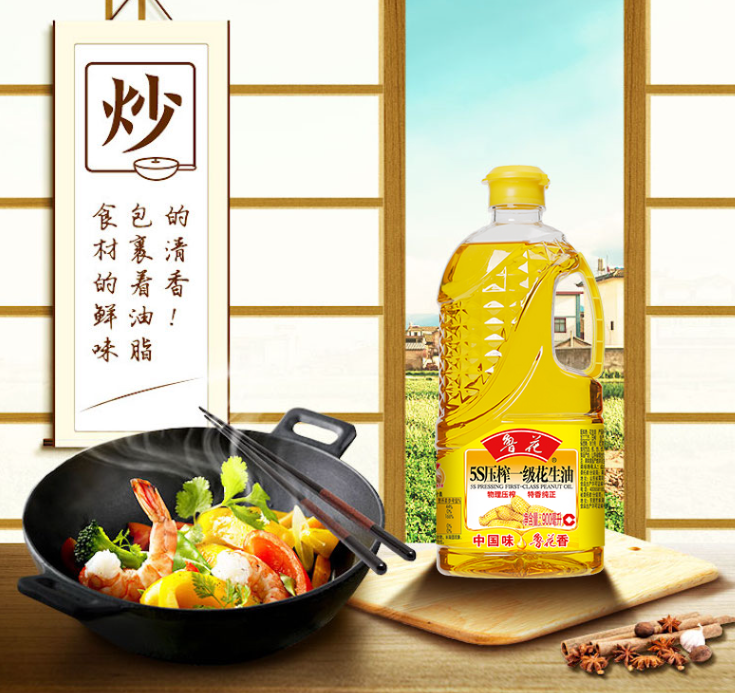 鲁花 食用油 5S物理压榨 压榨一级花生油900ml 小包装